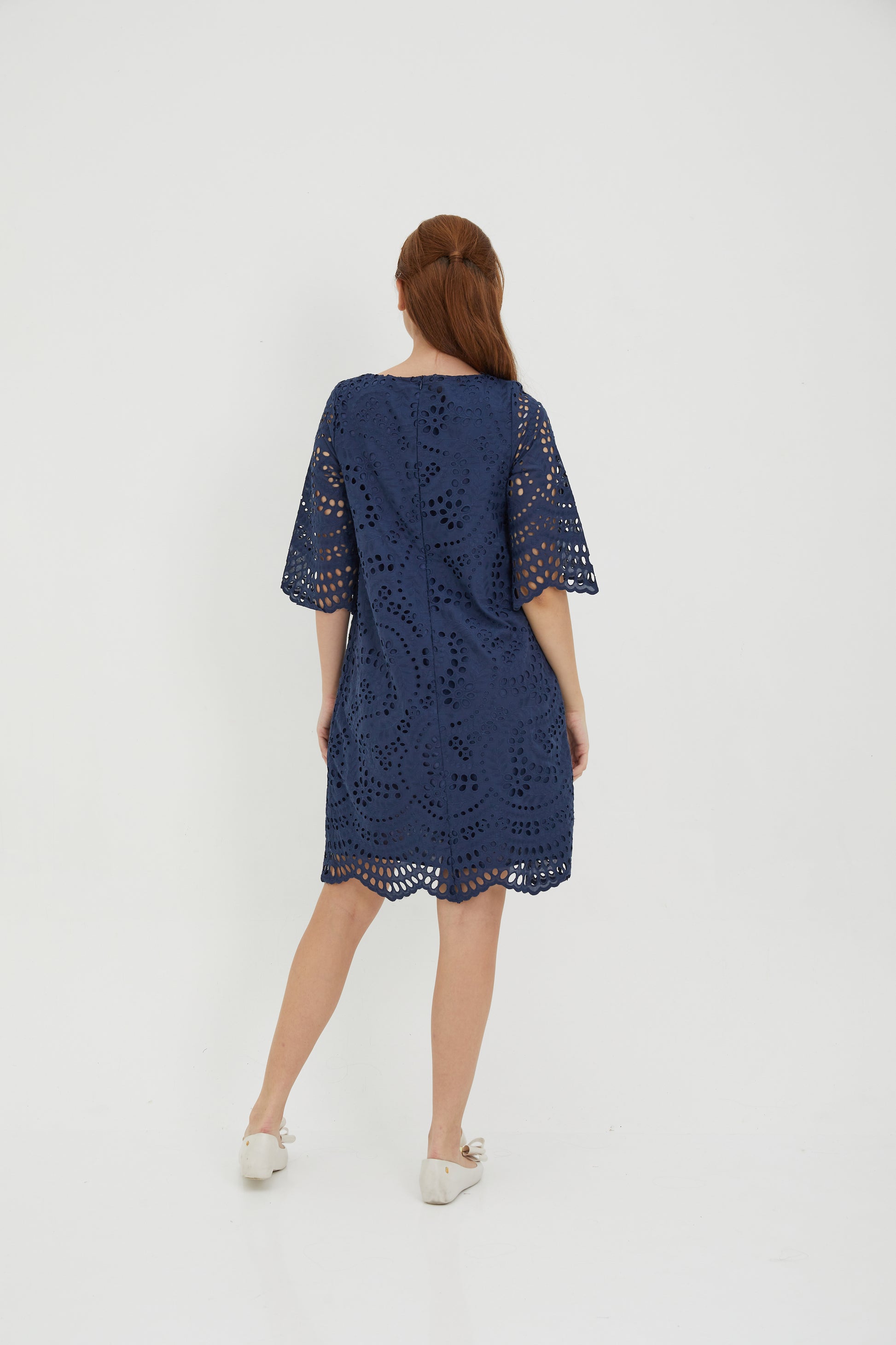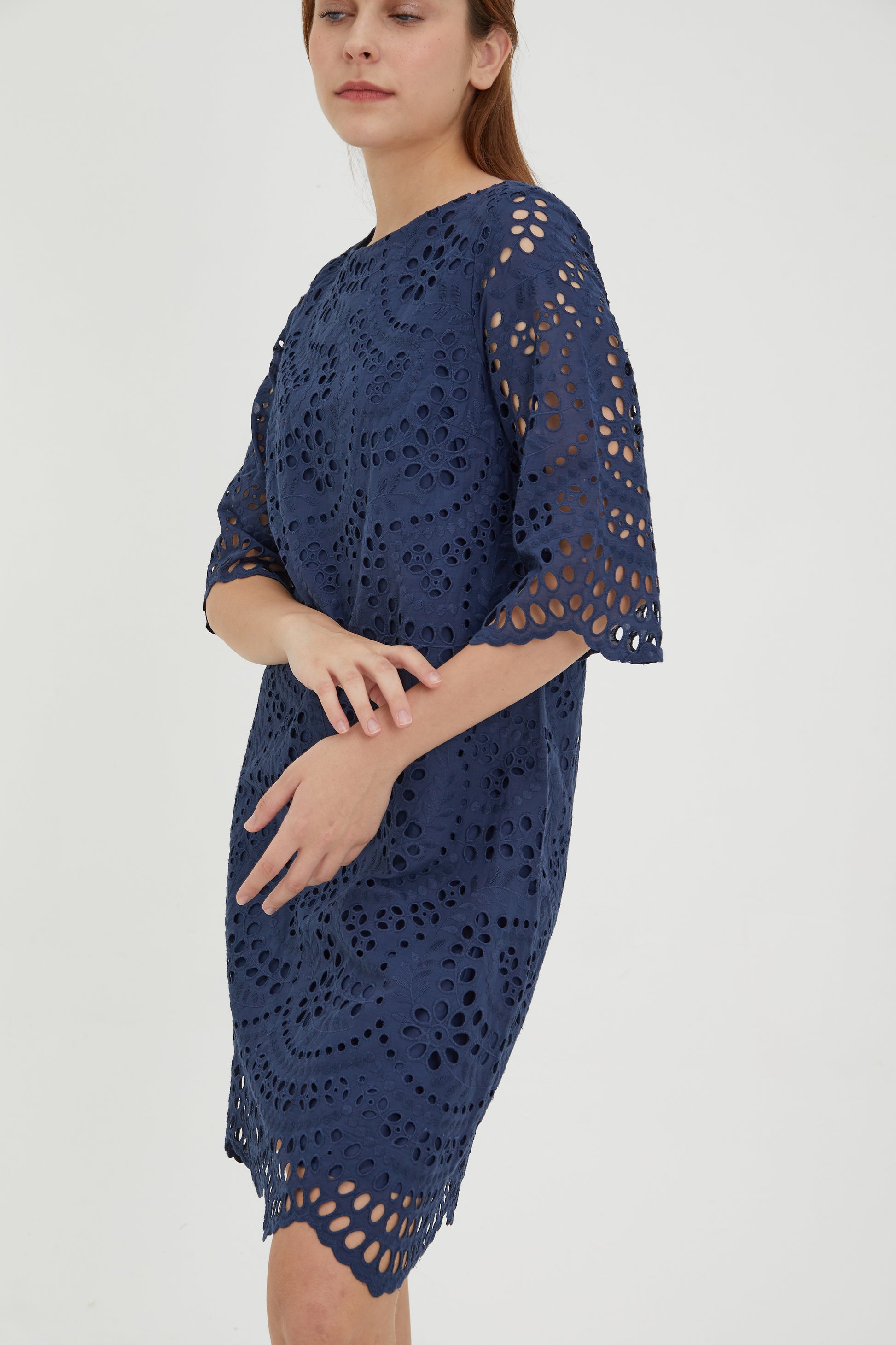 A simple round neck designed 3/4 sleeved dress, made in pretty eyelets embroidery material.