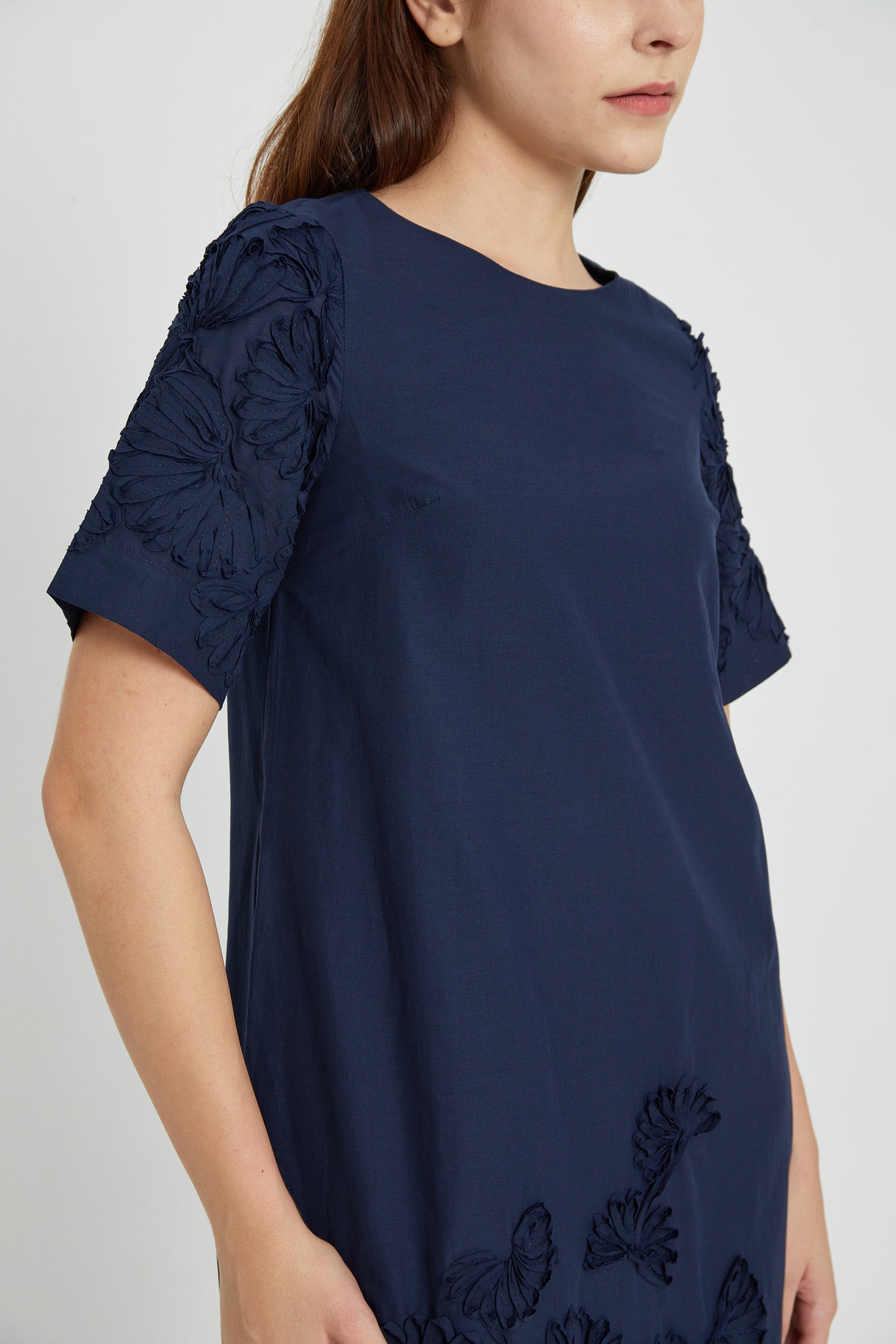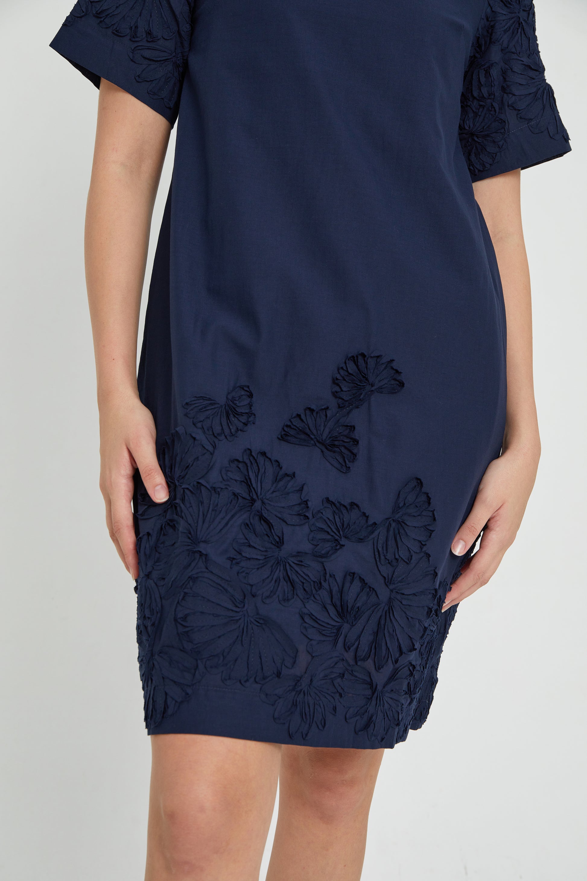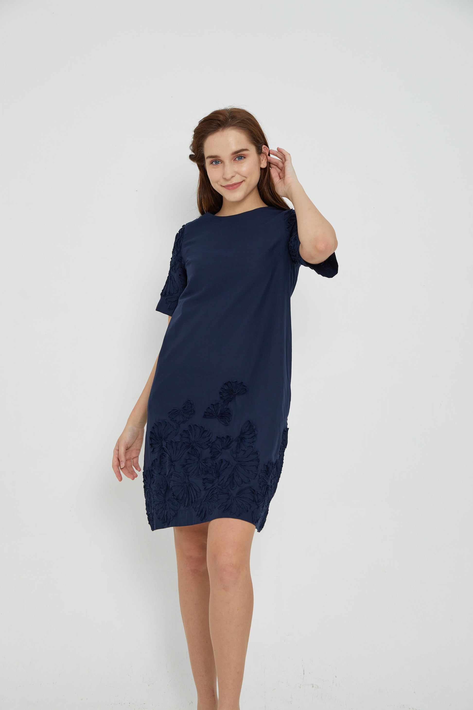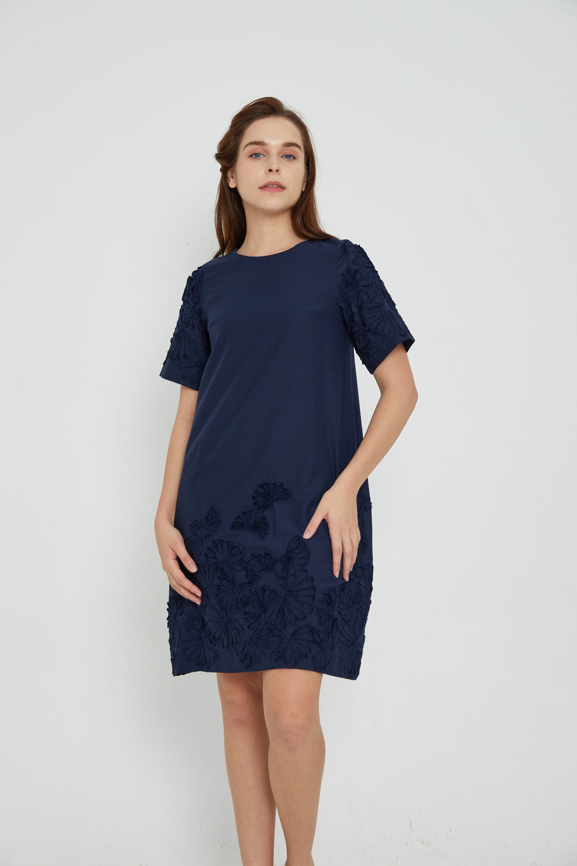 A simple round neck designed short sleeved dress, made in pretty eyelets embroidery material.