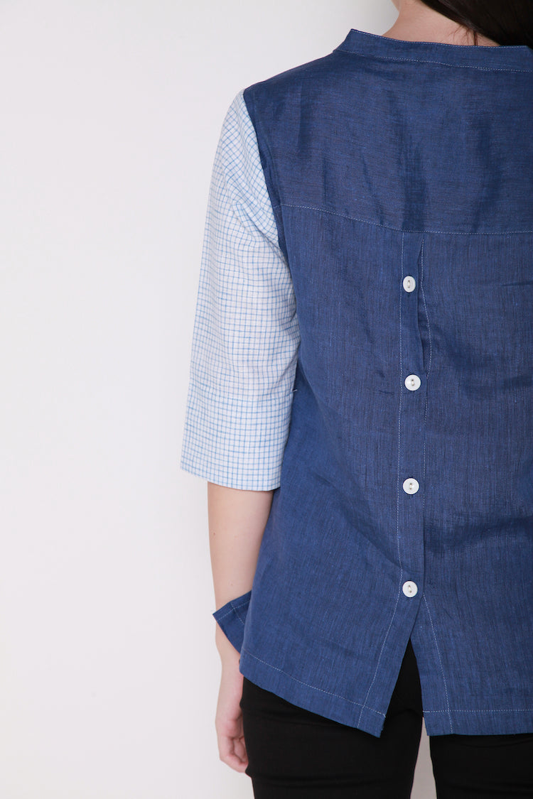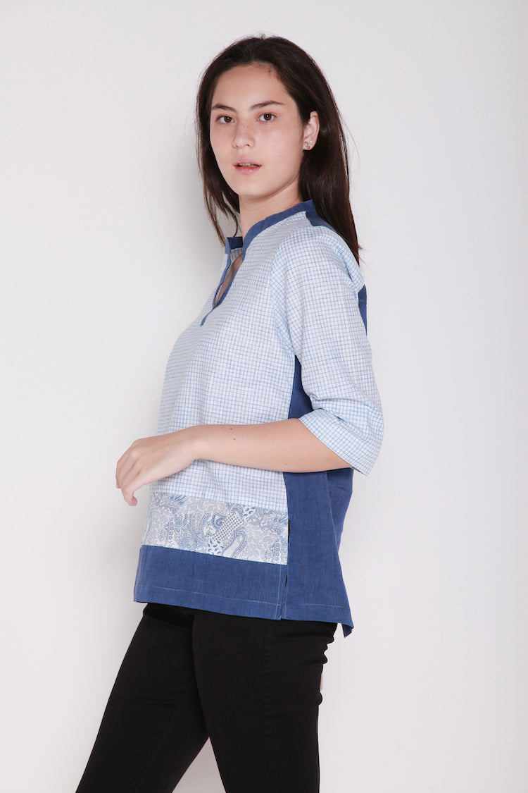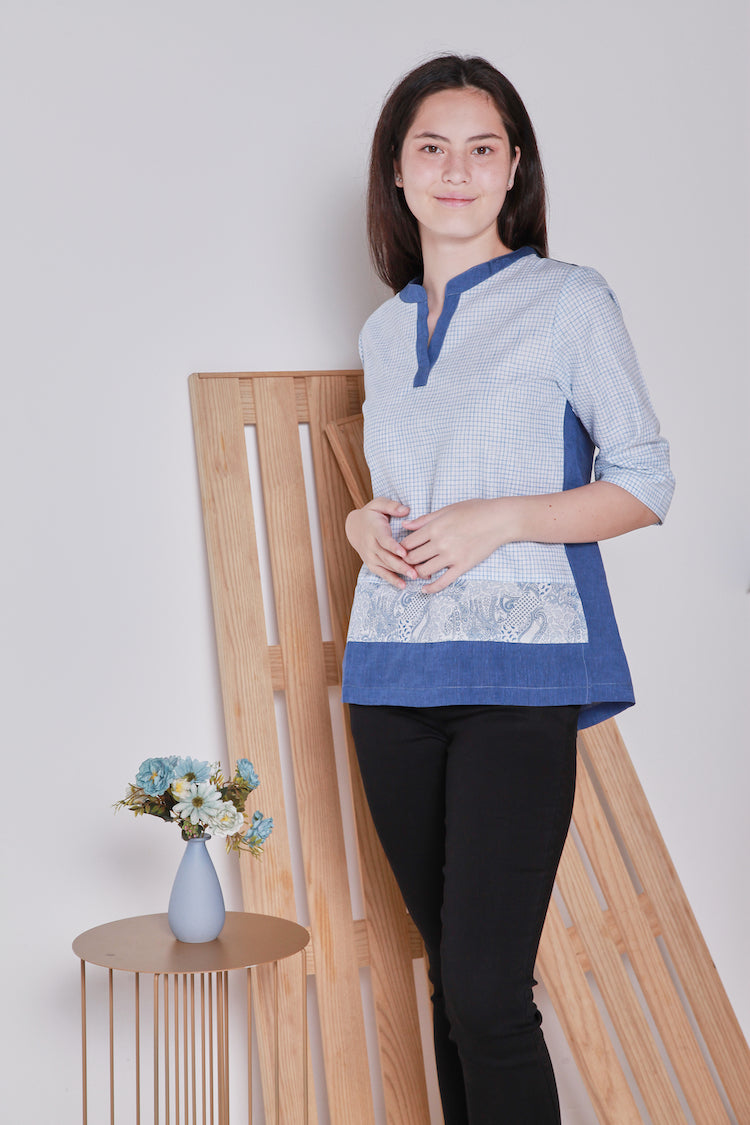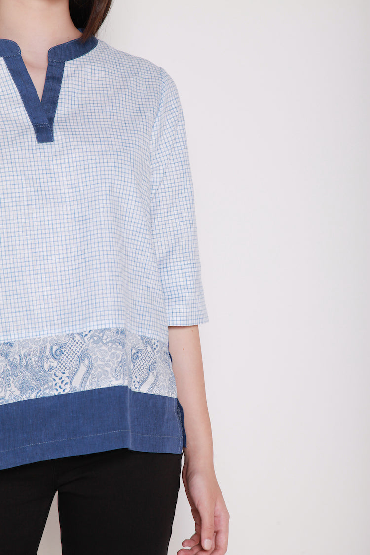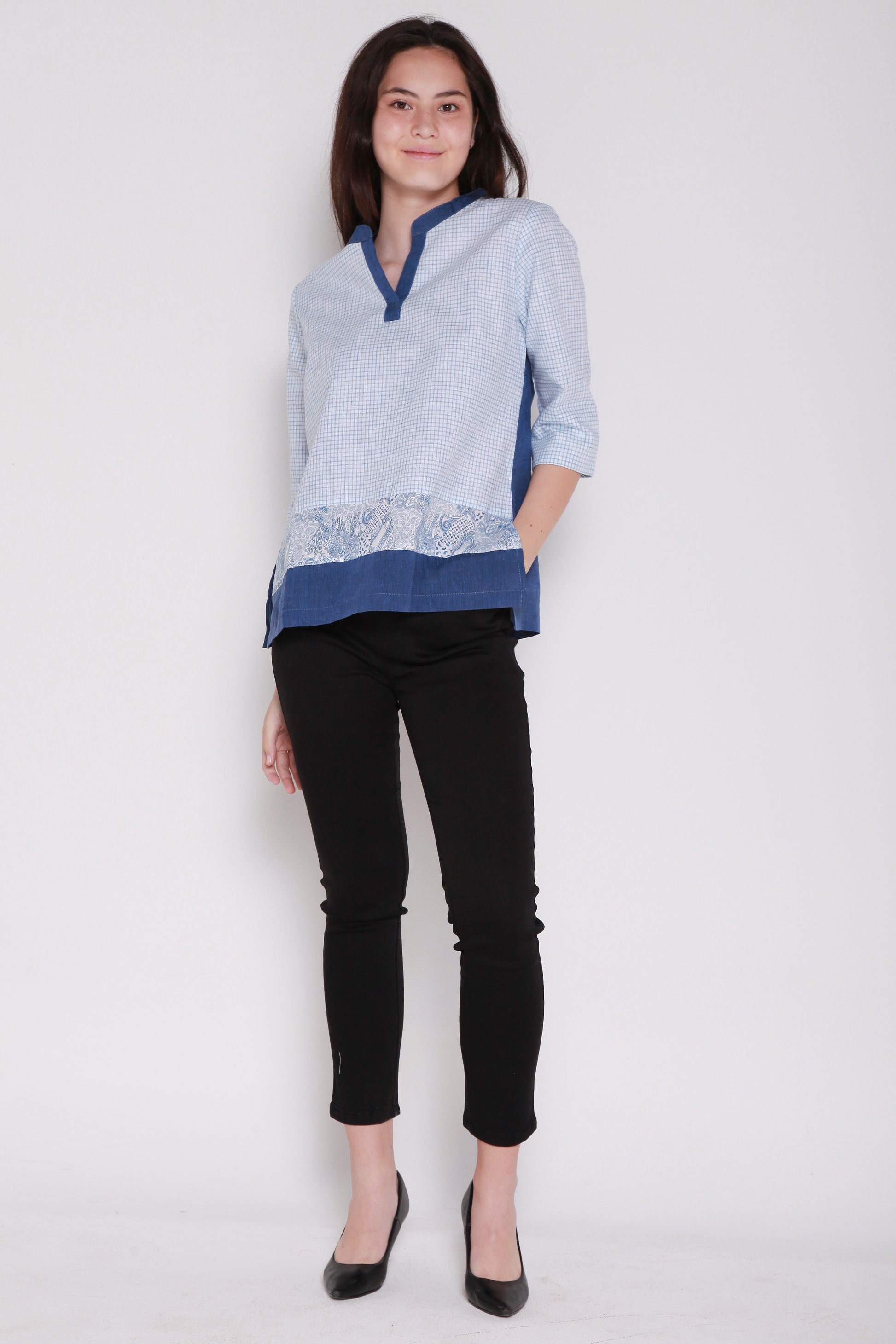 V collared, 3/4 sleeved women shirt.
