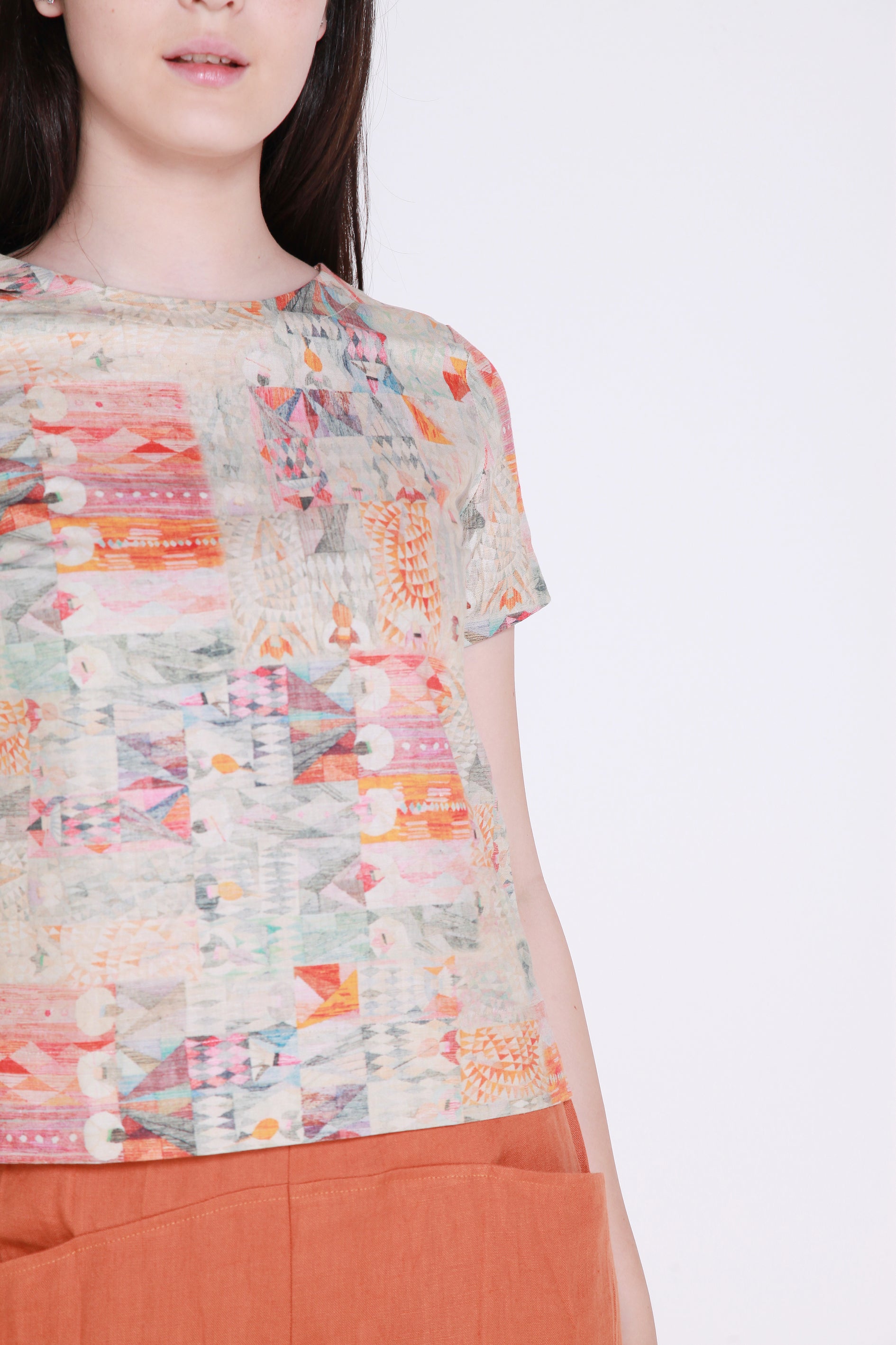 Inspired by asian ethnicity, a well designed round neck, short sleeve women blouse.
