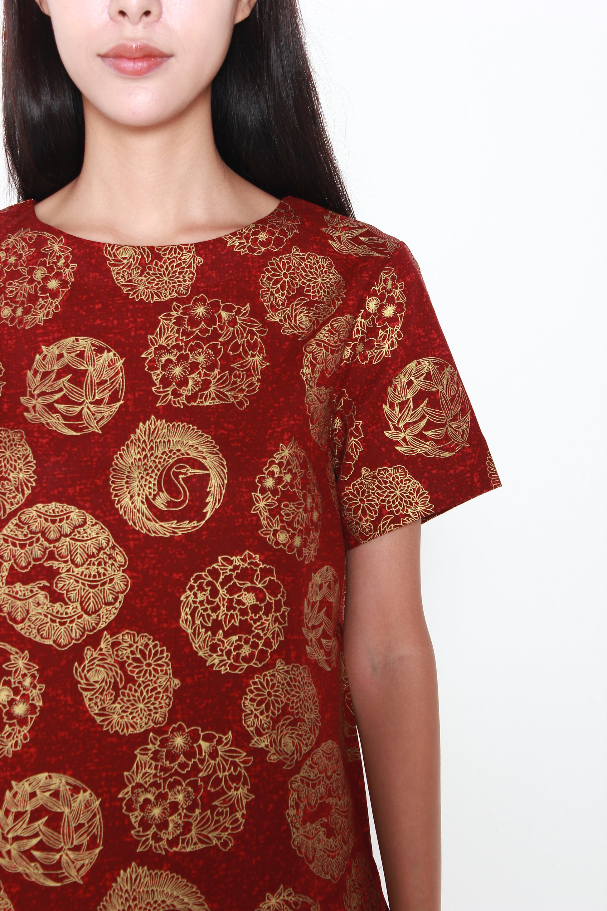 Inspired by asian gold emblem, a well designed round neck, short sleeve women blouse.