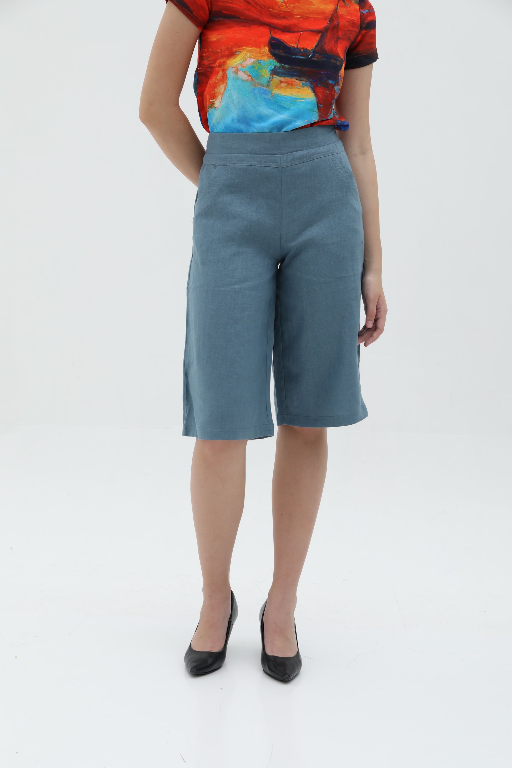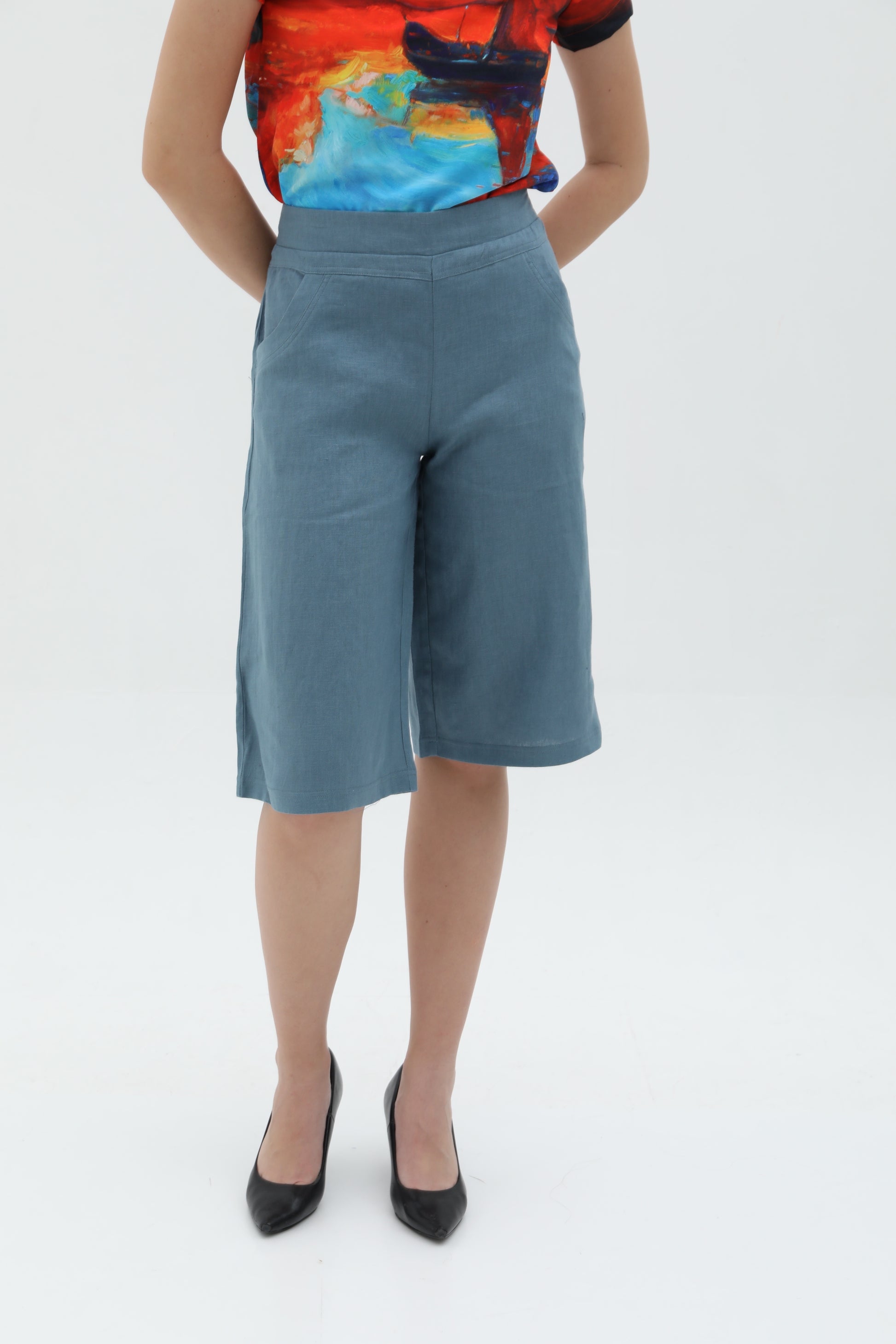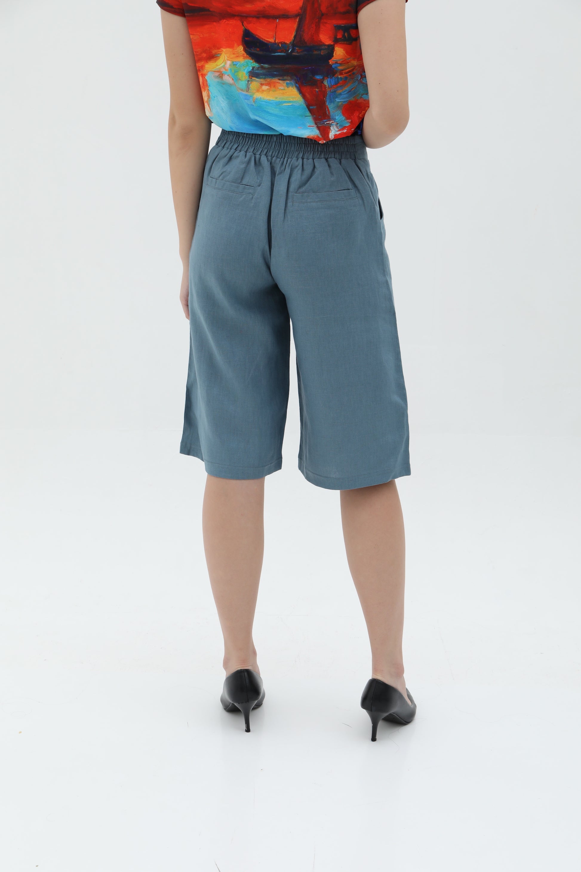 A causal loose-cut 3/4 culottes pants.