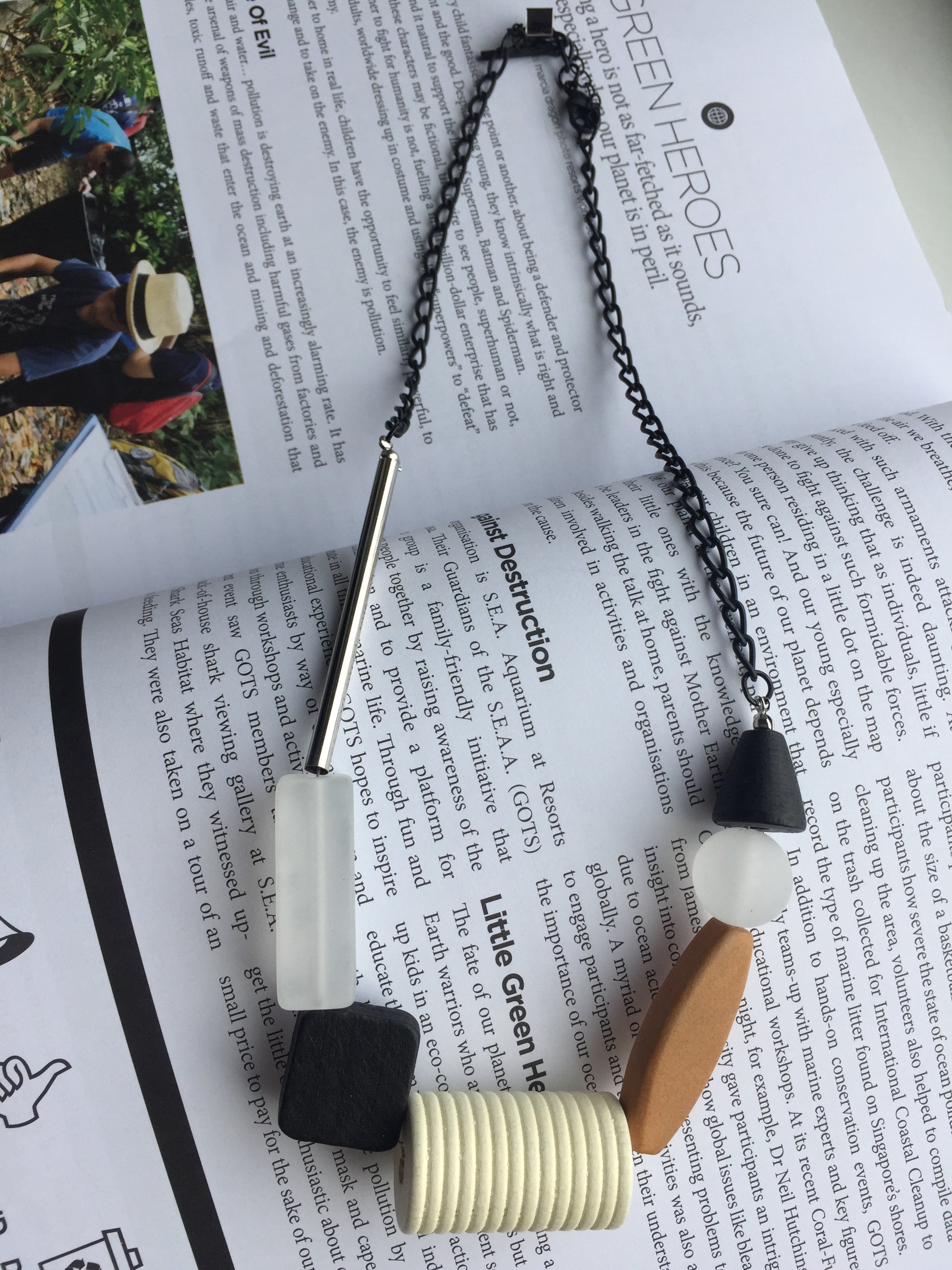 A simple Timber Matrix theme necklace, handcrafted with multiple- shaped beads.